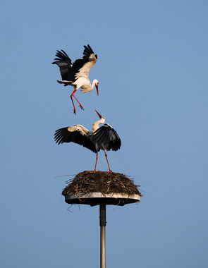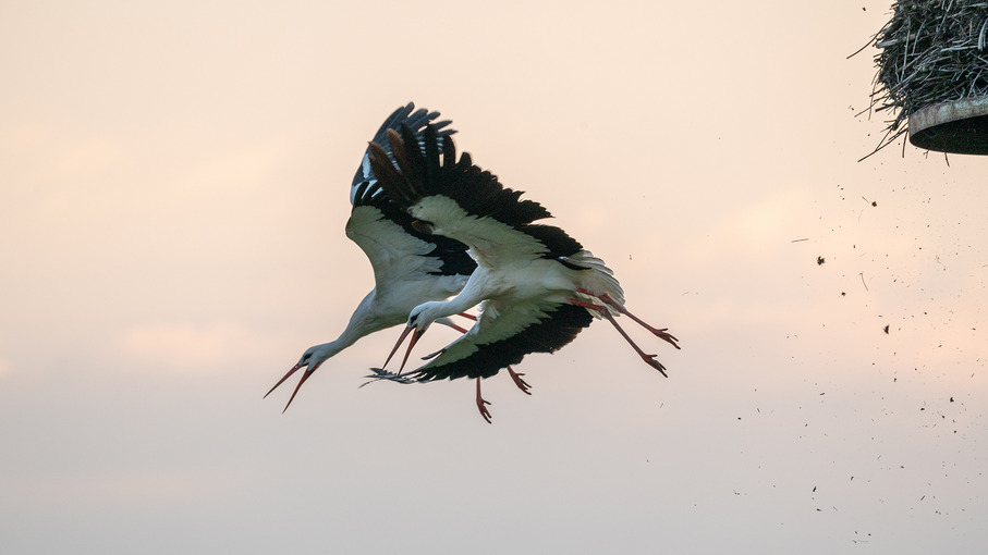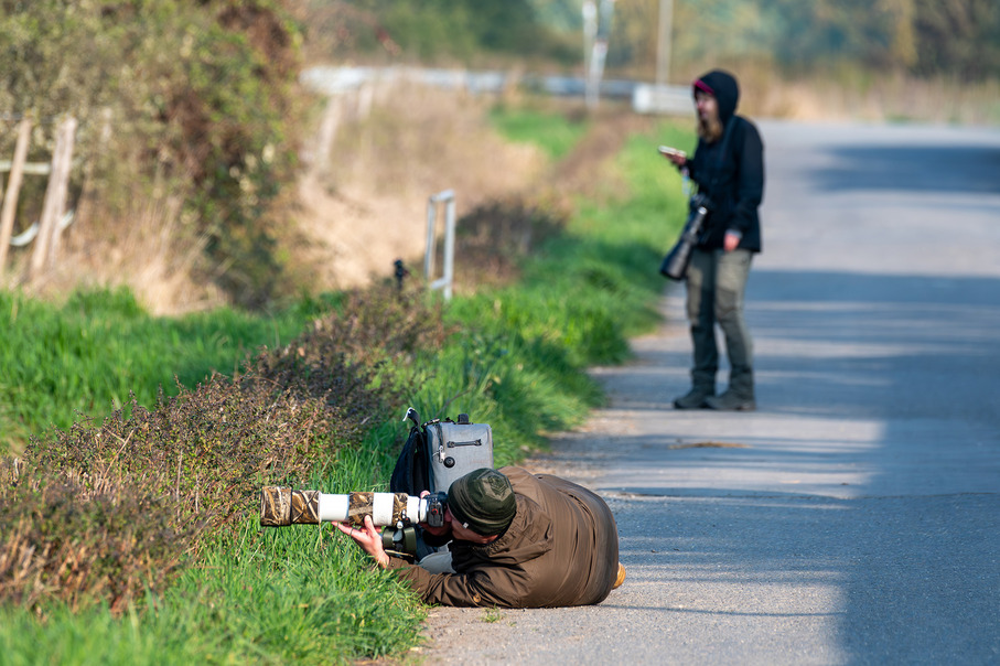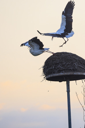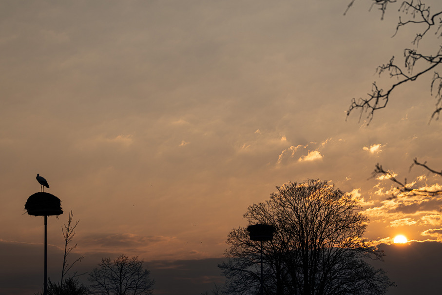 Am Samstag, den 21. März trafen sich 21 Fotografen und Fotografinnen vor dem ehemaligen Vogelpark in Biebesheim. Die Turmuhr schlug 6 Uhr morgens und nach der klaren Nacht stand das Thermometer auf 3 Grad Celsius. Das sich anbahnende Morgenrot machte jedoch Hoffnung auf ein paar wärmende Sonnenstrahlen. Den zahlreichen Weißstörchen machte der frostige Start in den Tag allerdings wenig aus. Aus allen Richtungen klapperte es aus den teils großen Nestern. Nach einer kurzen Einführung von Carsten Braun der das Gebiet gut kannte bewegte sich das Licht in Richtung „Los geht’s“. Die Vögel waren schon Unterwegs und schleppten allerlei Nistmaterial in Ihre Nester. Der Zeitpunkt für das Treffen war perfekt gewählt, denn die Aktivität von Meister Adebar ließ keine Wünsche offen. Wie immer verteilte sich die Gruppe über das gesamte Gebiet und setzte das Thema „Weißstorch“ kreativ um. Ab 8 Uhr öffnete ein Parkangestellter das Haupttor und so war es möglich die Perspektiven zu wechseln. Bis 11.30 Uhr beschäftigten sich alle intensiv mit dem Thema, einige erkundeten auch den benachbarten Wechselsee. Danach ging es mit allen, die Hunger hatten in die örtliche Pizzeria für eine ausgedehnte Mittagspause. Gut gestärkt machte sich eine kleinere Gruppe noch einmal an die Arbeit, um das diffuse Licht des mittlerweile bewölkten Himmels zu nutzen. Es war ein schöner, erfolgreicher Tag bei den Störchen. Vielen Dank an Carsten Braun für die perfekte Organisation.